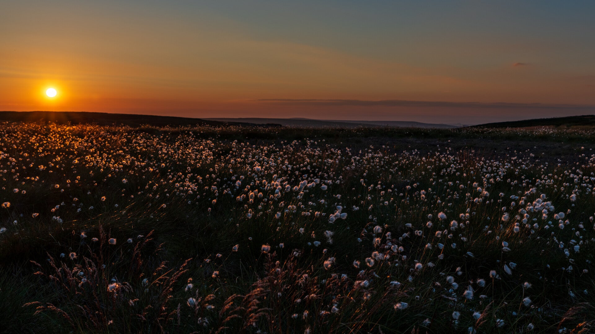 I was lucky to see the sunset on my way back from Rookhope to Blanchland. I have travelled this high road with the beautiful views several times before. Last January I stopped and noticed that if you walk towards the edge of the plateau from the road just after you cross the cattle grid once you reach the high plateau the view towards Beldon Cleugh is great. So this time I arrived just in time to walk to the same spot and was able to experiment with the cotton grass in the foreground and the wonderful sunset.