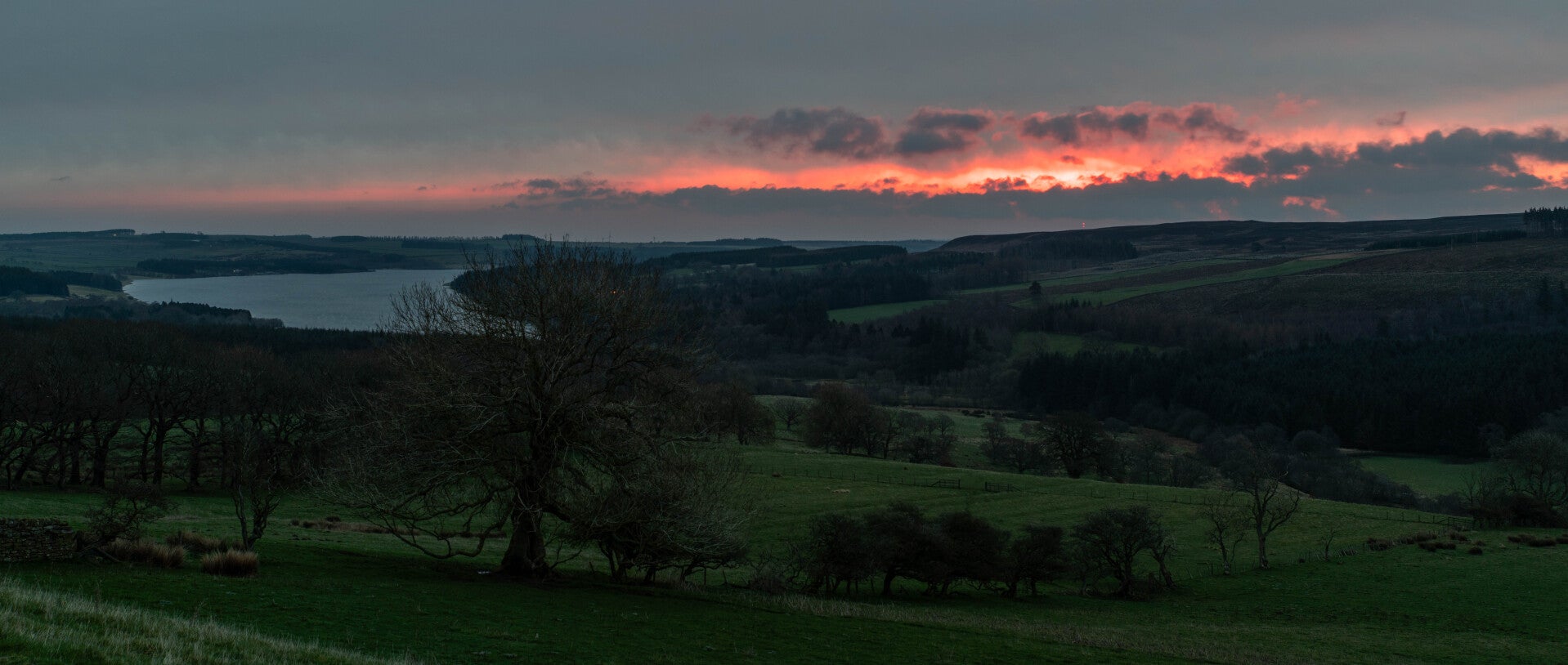 Alongside Derwent Reservoir there are many lone trees which give good foreground for sunrise and sunset. On the first early morning shoot there was a cloudy sky so the pictures asked for conversion into B+W. The spot is just below the sailing club looking towards the Dam of the reservoir. The second sunrise shot is high above the Reservoir at Cowbyre Farm where I took a test shot the afternoon before. I was too cold to wander into the meadow and wait in the open. It was an ice cold wind and I prefered to stay in the car and covered the camera with a thermo bag while waiting for the sun to rise. In friendlier weather I will come again and go closer to the tree but that is for another visit. In the distance on the right of the reservoir is our Caravan Park.