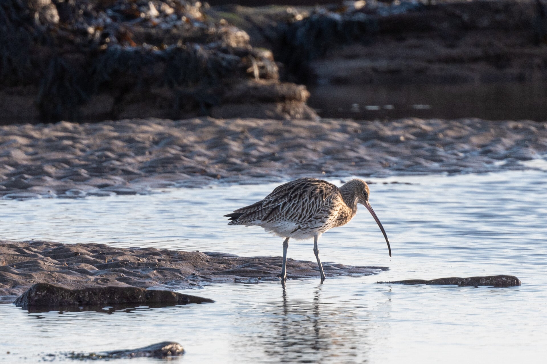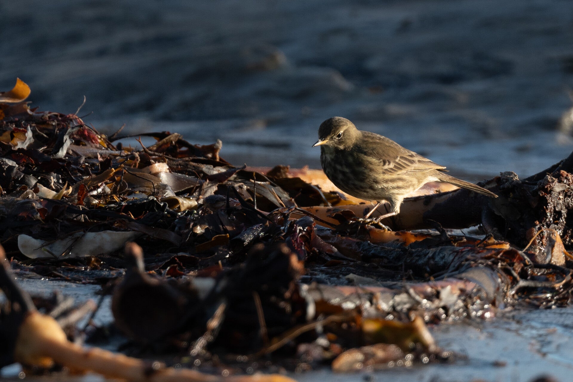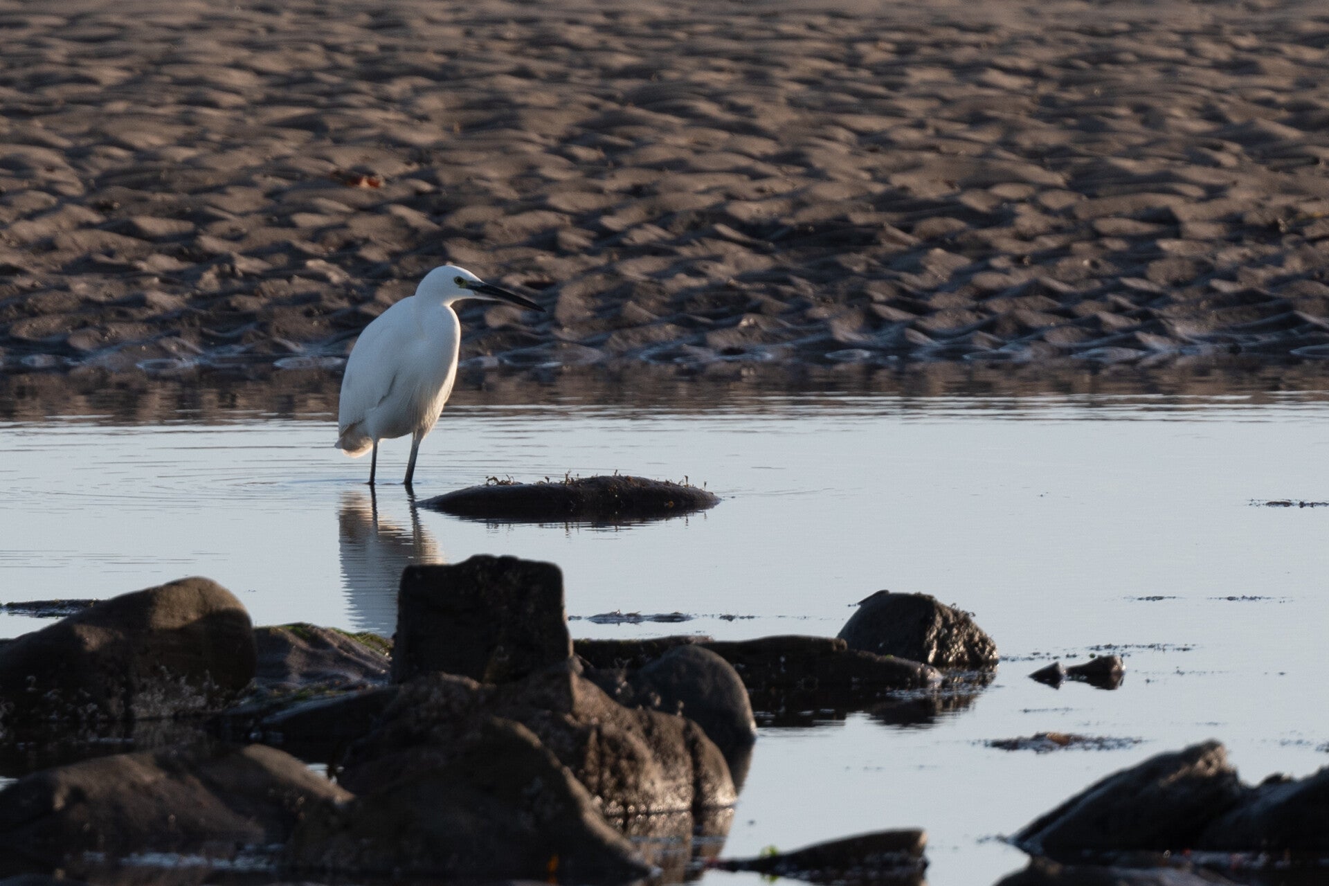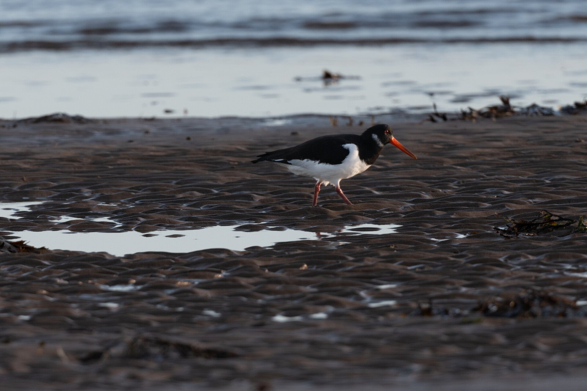 Arrived when it was still pitch dark. I used my headlamp to find my way along the beach. Because the tide was on it´s way out and the sea was calm I decided not to go for the iconic shot with the cliffs and the lighthouse in the background but to stay above the rocks next to the car park and have them illuminated from the side. The two photos are almost the beach from left to right at different times. When it got lighter I noticed a lot of different birds. I fetched my long lens and managed to get a few good ones.