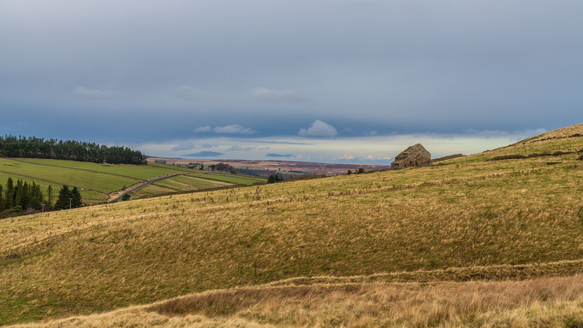 The day I came back from the Northumbrian coast the moon was supposed to be great. So I asked Robbie my neighbour at Village Green to join me on a scouting exhibition what would be the best place to photograph it. You should have some landmark in the photo to make the size of the moon appear bigger. My intention was to include the two chimneys above Edmundbyers. So we took the road from Huntstantworth towards Rookhope and I soon found my spot. Robbie suggested to have a walk and I agreed. It turned out to be a fantastic walk through the rough towards the chimneys and back which took us almost 3 hours. I hardly had time to get back and get a rest before I had to go back for the moon to rise....