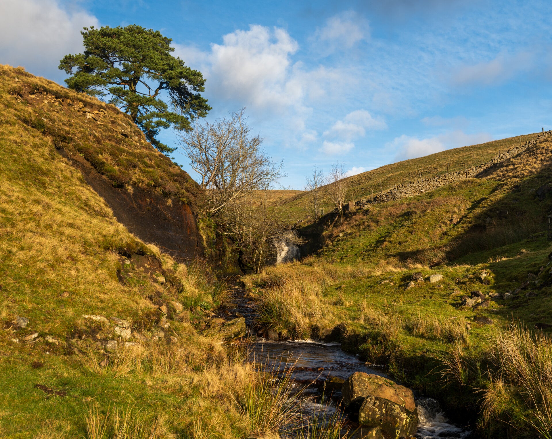 When I was at Cowshill to take photos of the waterfalls two local dog walkers told me that there is another waterfall further up. The first day I returned the weather was really awful. I managed to find the waterfall and stood in front of it in the pouring rain. The next sunny day however I was back and it was really worth it. The first photo made it onto my calendar for 2024. When I later checked the map I noticed that a little bit further up should be another waterfall.....