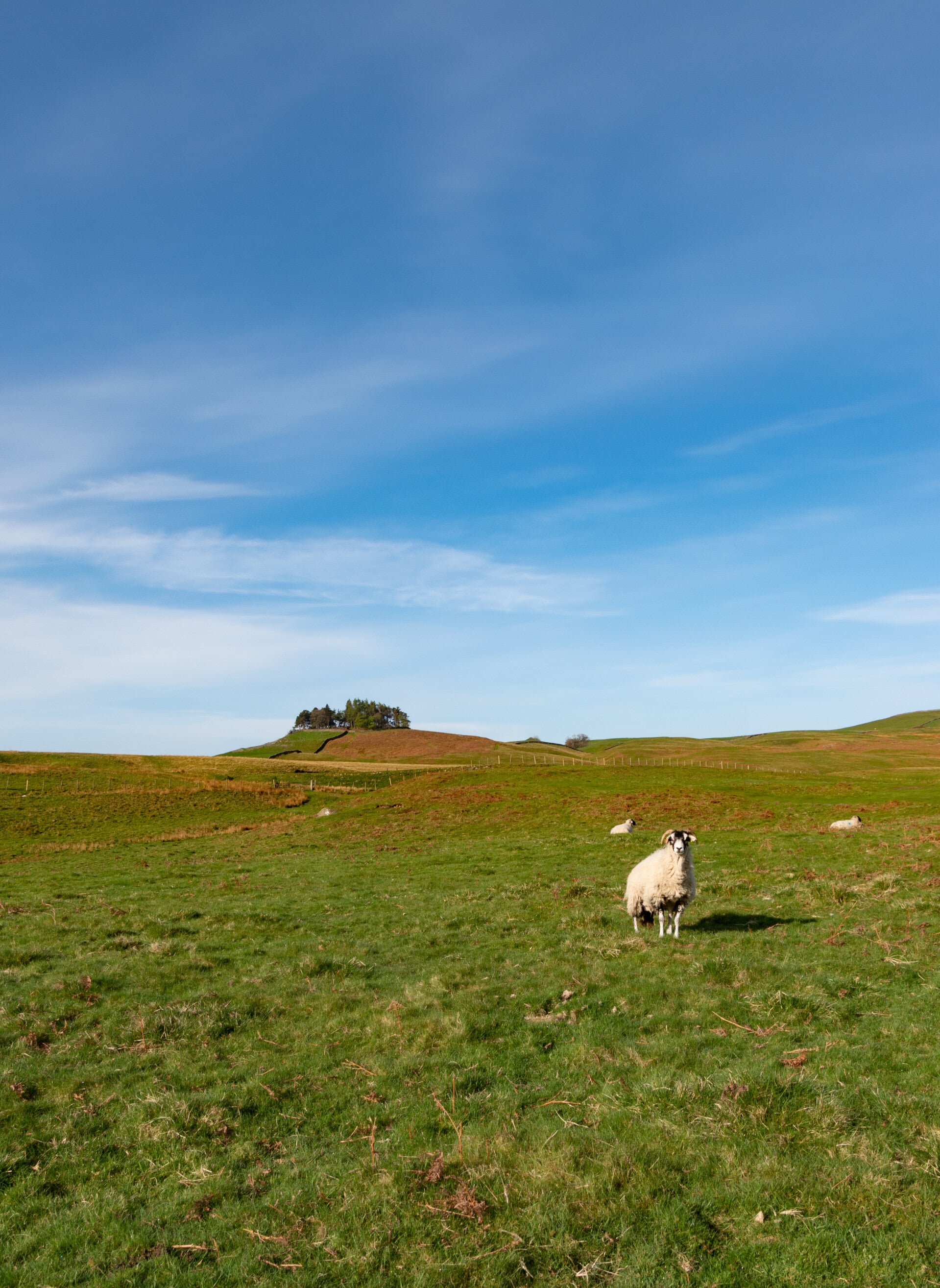 I was always fascinated by this story and on many photos of Teesdale Kirkcarrion is visible in the distance. That day I wanted to actually climb up to the top and explore the hillside. I arrived very early at Middleton, crossed the bridge and parked at the turnoff where the small dead end lane leads to Holwick Scar (marked on the map). The walk up the hill is part of the Pennine Way but one cannot get lost since you have your target always clearly in sight. On photo #3 is the view towards Middleton and my next stop, the wooded gorge of Huddeshope Beck where I wanted to take photos of waterfalls later on. The views on the way up were already phenomenal. On photo #4 you can see Holwick Scar in the distance on the left with the crag that I took the panorama from. The only other person near was the farmer passing by on his quad lower down. As I came closer to the top I couldn´t stop taking photos from all possible angles.