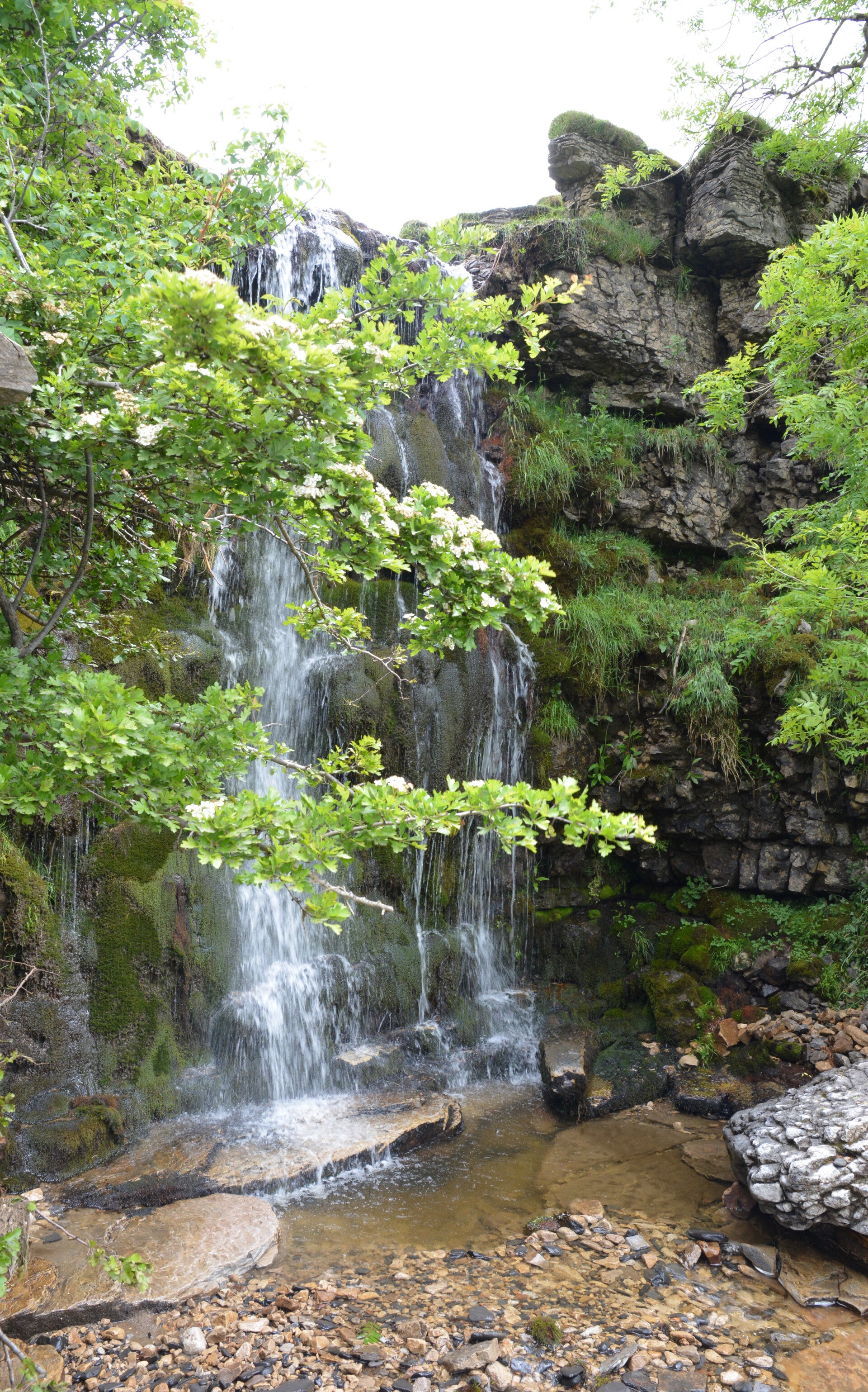 The next day on our way to Hubberholme we stopped at the trout ponds at Kilnsey Park to see Kilnsey Crag, the limestone outcrop that is 50 metres high and half a mile long. Our main walk started at Hubberholme with in upper Wharfedale with its lovely old church and bridge. We walked pass Yockenthwaite with its packhorse bridge and turned round a little further at the bronze age ring cairn. Although many historians call it a stone circle, these stones are in fact the kerbstones of what remains of a burial cairn where a tribal chieftain was buried. We drove a short distance to Cray. From there Frank walked up to Cow Close Gill. It is situated on the flanks of Buckden Pike and tumbles down the fell in four large drops. On our way back to Pateley Bridge we detoured to Arncliffe. It is a small village in Littondale, a tributary valley of Wharfedale. We climbed up to the top of the steep fell to the north of Arncliffe to Old Cote Moor and enjoyed the fantastic views.